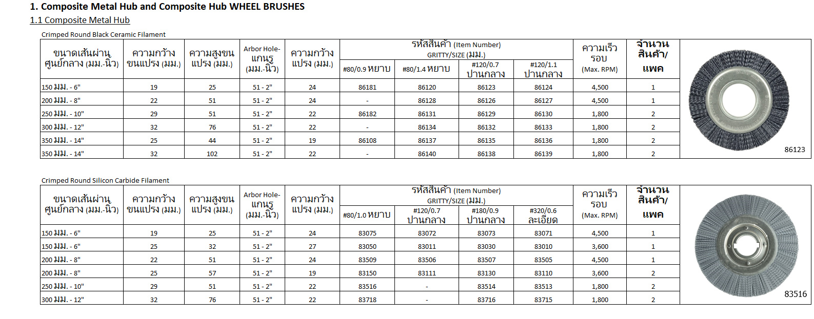 หน้าแรก / แปรงอุตสาหกรรม / แปรงไนล่อนผสมสารขัด / ABRASIVE NYLON WHEEL BRUSHES